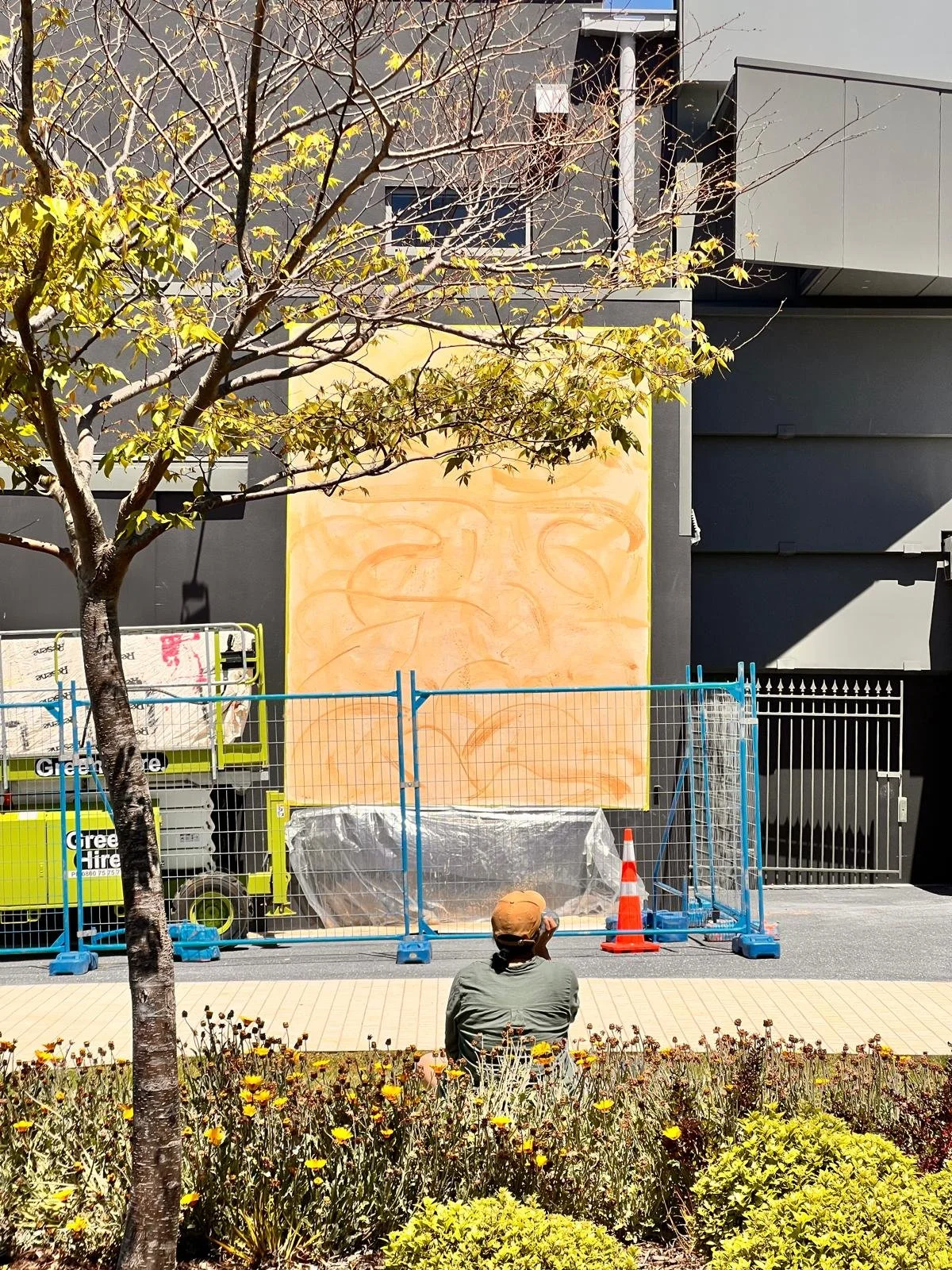 After gathering, I joined Maraea at the Tauranga Art Gallery to help process the whenua. Together we mixed and tested it in the sunlight, experimenting with consistency and tone to find the right surface behaviour. Once the pigment was ready, we worked side by side, brushing large gestural marks across the wall to form the base layer of the mural — sweeping arcs of earth that would become the grounding presence of the work.